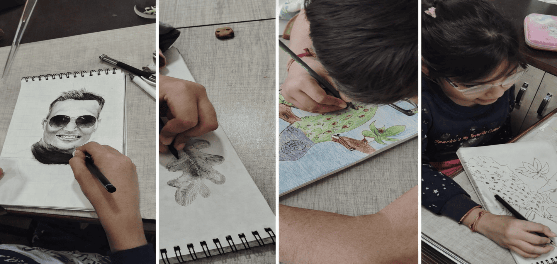 Children at Shivna’s Art Academy actively participate in the complete creative journey from preparing sketches and exploring colors to completing final artworks. Each stage helps children build patience, focus, and confidence while enjoying the process of creation.
